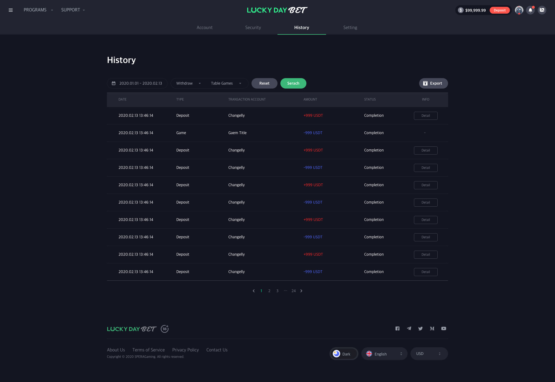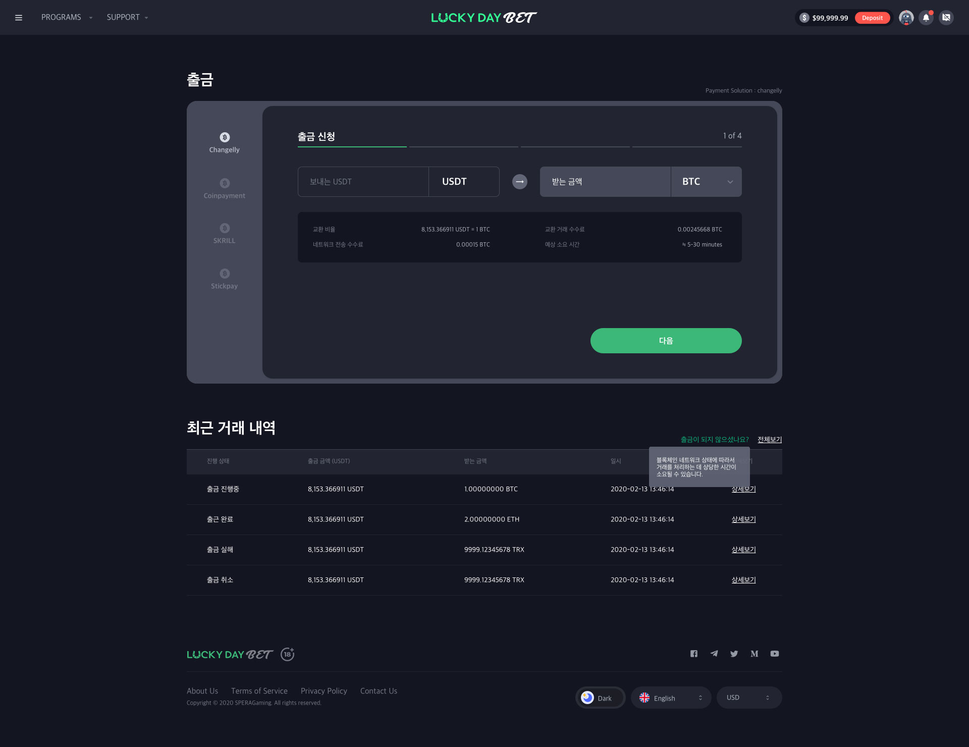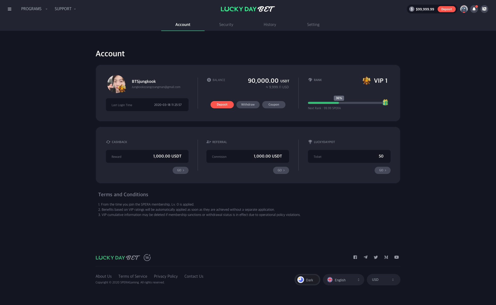 'SPERA Gaming Platform'은 USDT로 입출금을 지원하는 오리지널 카지노 서비스입니다.